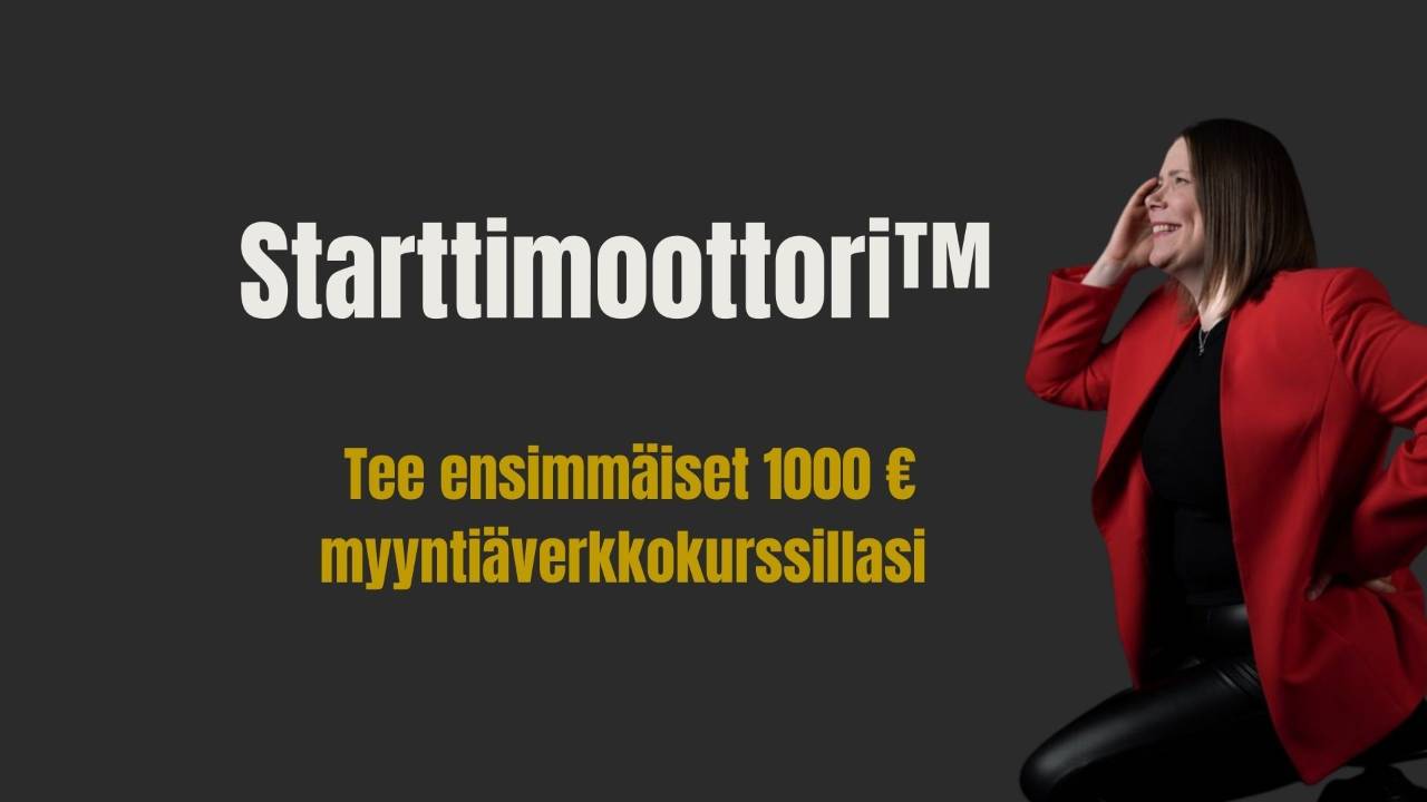🎁 BONUS: Somesisältö joka myy-kurssi (arvo 127€): Suurin osa yrittäjistä tekee somessa sisältöä, joka saa kyllä tykkäyksiä… mutta ei kauppaa. Tässä tehokkaassa minikurssissa opit, miten rakennat sisällön, joka oikeasti myy.
